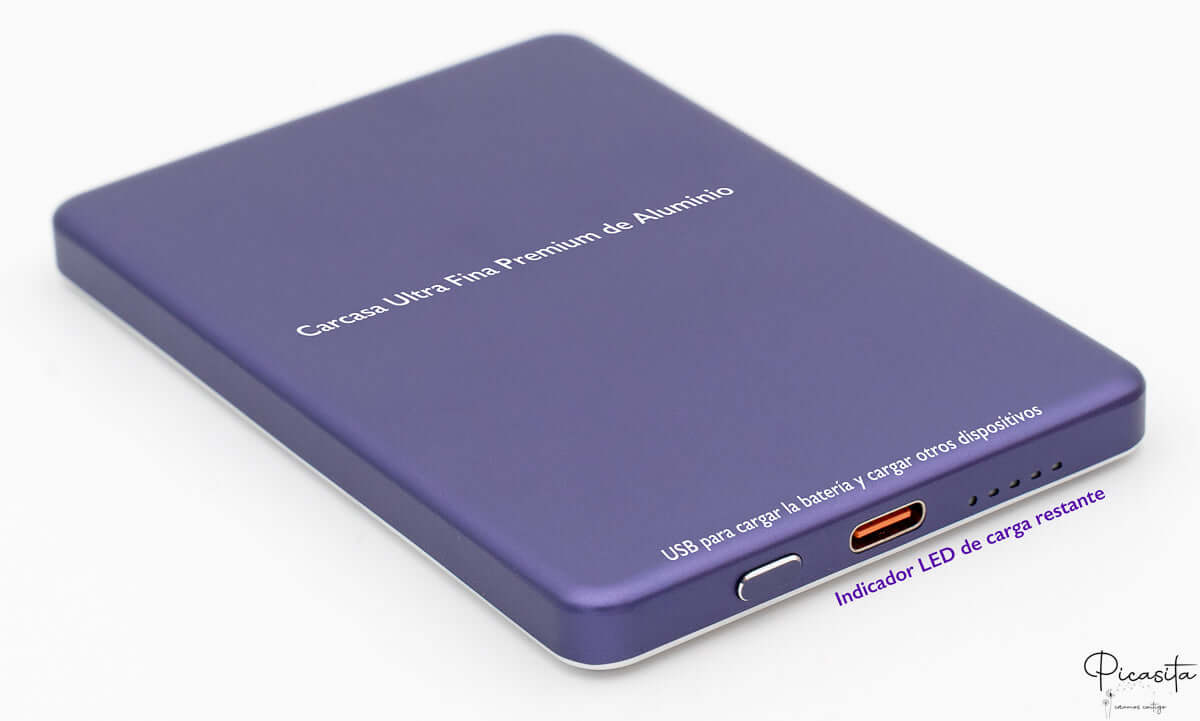 Além da sua avançada tecnologia sem fios, esta bateria oferece 5000mAh de capacidade e uma porta USB-C de saída de 22,5W para um carregamento por cabo ultrarrápido. O seu design fino em alumínio e o indicador LED de carga completam um powerbank personalizado de gama alta.