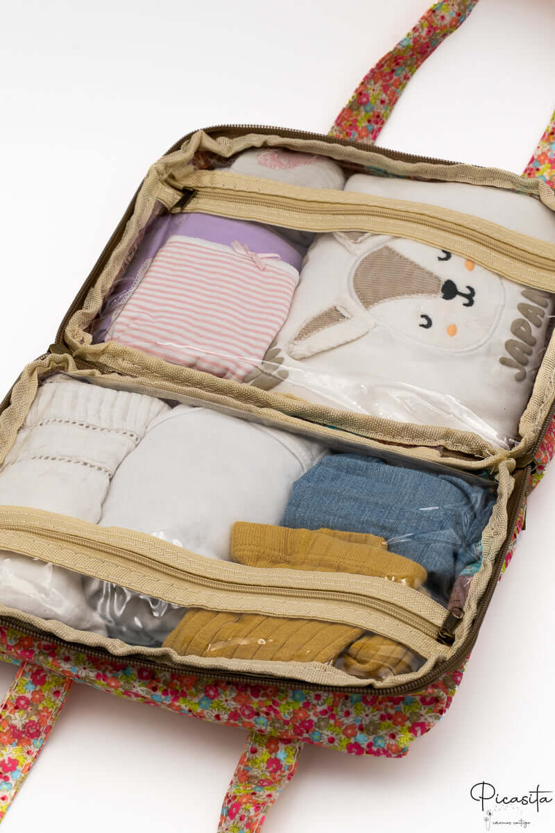 Embora esteja otimizada como bolsa de muda para creche para a etapa dos 0 aos 3 anos devido ao tamanho da roupa, pode ser perfeitamente usada para levar roupa interior de reserva ou acessórios em anos seguintes.