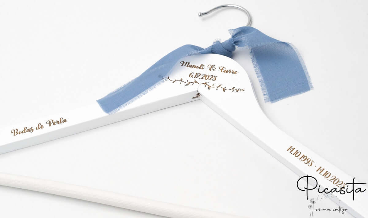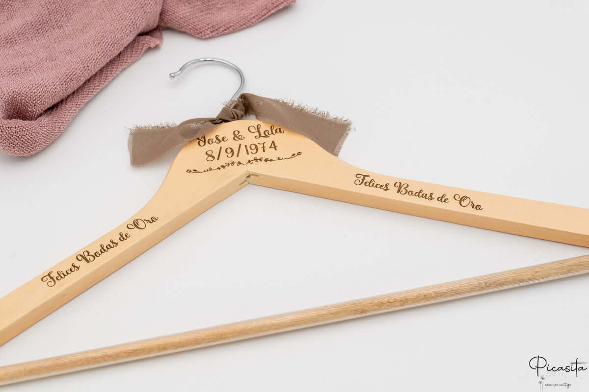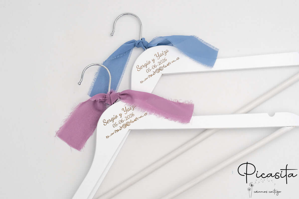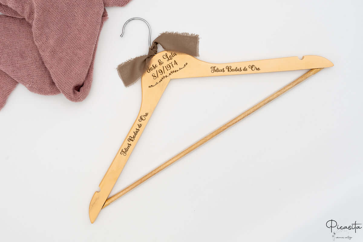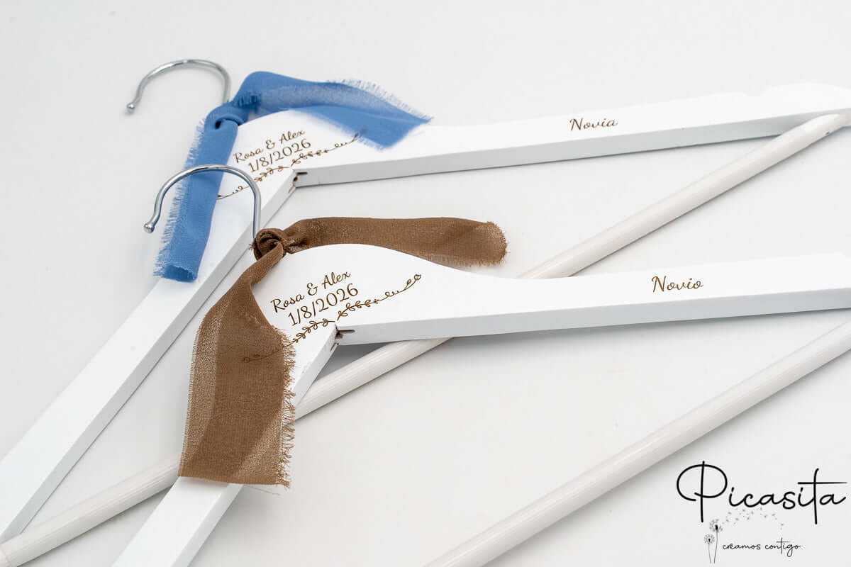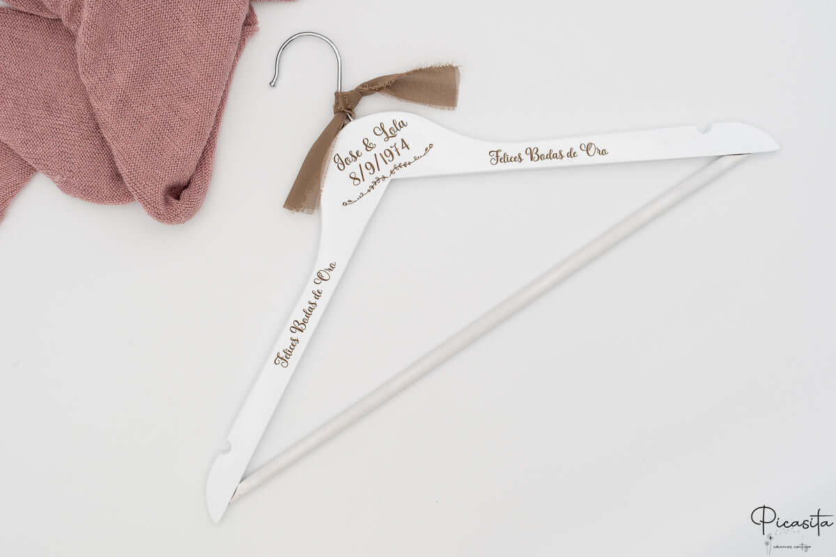 Não deixem escapar nenhum detalhe na planificação do vosso dia de sonho. Um cabide de casamento personalizado é um símbolo da vossa atenção ao detalhe, do vosso desejo de que tudo seja perfeito e, acima de tudo, do vosso amor. Escolham o cabide personalizado para noivos que melhor fale de vós e deixem que a Picasita.es faça parte da vossa preciosa história. Este não é apenas um cabide, é o guardião dos vossos sonhos realizados, um cabide de noivos que esperará pacientemente o momento de brilhar convosco. Cada cabide gravado para noivos é um testemunho do cuidado e do amor investidos em cada preparação.