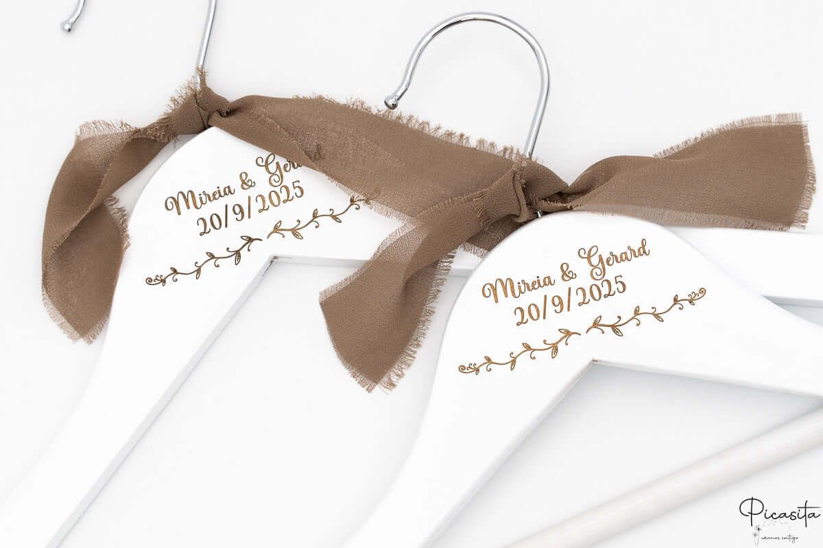 O dia do vosso casamento é uma sinfonia de momentos preciosos, e na Picasita.es sabemos que os pequenos elementos são aqueles que, em conjunto, criam uma melodia inesquecível. É por isso que o nosso cabide personalizado para noivos foi concebido não só como um acessório funcional, mas como um emblema do vosso grande dia, um cabide de casamento que captura a essência da vossa união e se torna um tesouro para toda a vida.