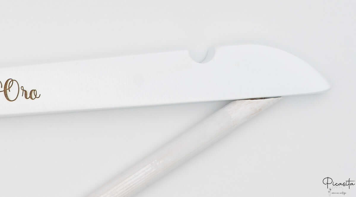O nosso cabide personalizado para noivos destaca-se não só pela sua beleza, mas também pela sua qualidade. Fabricado com materiais resistentes e com um acabamento impecável em branco, foi concebido para sustentar com graça desde o vestido de noiva mais elaborado e volumoso até ao fato de noivo mais elegante. Compreendemos a importância da funcionalidade, por isso, a barra horizontal do nosso cabide de casamento inclui uma proteção de plástico emborrachado, pensada para evitar que as calças ou outras peças delicadas escorreguem, garantindo que tudo se mantenha perfeito. A escolha de um cabide de noivos da Picasita.es é uma aposta na durabilidade e no design cuidado.
