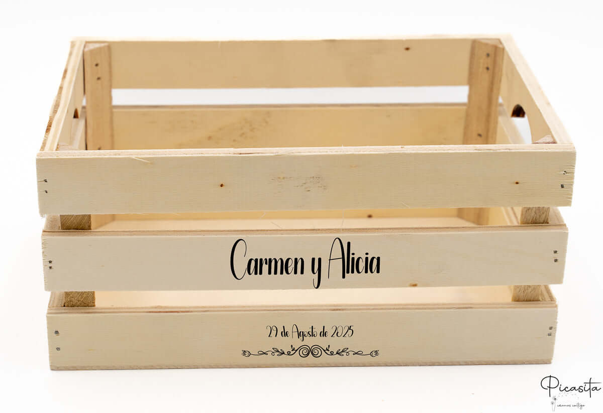Escolhe-a pela tranquilidade de saber que as tuas lembranças de casamento ou comunhão estarão apresentadas de forma irrepreensível. A sua personalização a laser garante que a recordação desse dia (nomes, datas) perdure para sempre, sem se apagar como acontece com autocolantes. Além disso, ao comprares na picasita, apoias a produção local e desfrutas de um envio rápido para que tenhas tudo pronto sem preocupações de última hora.