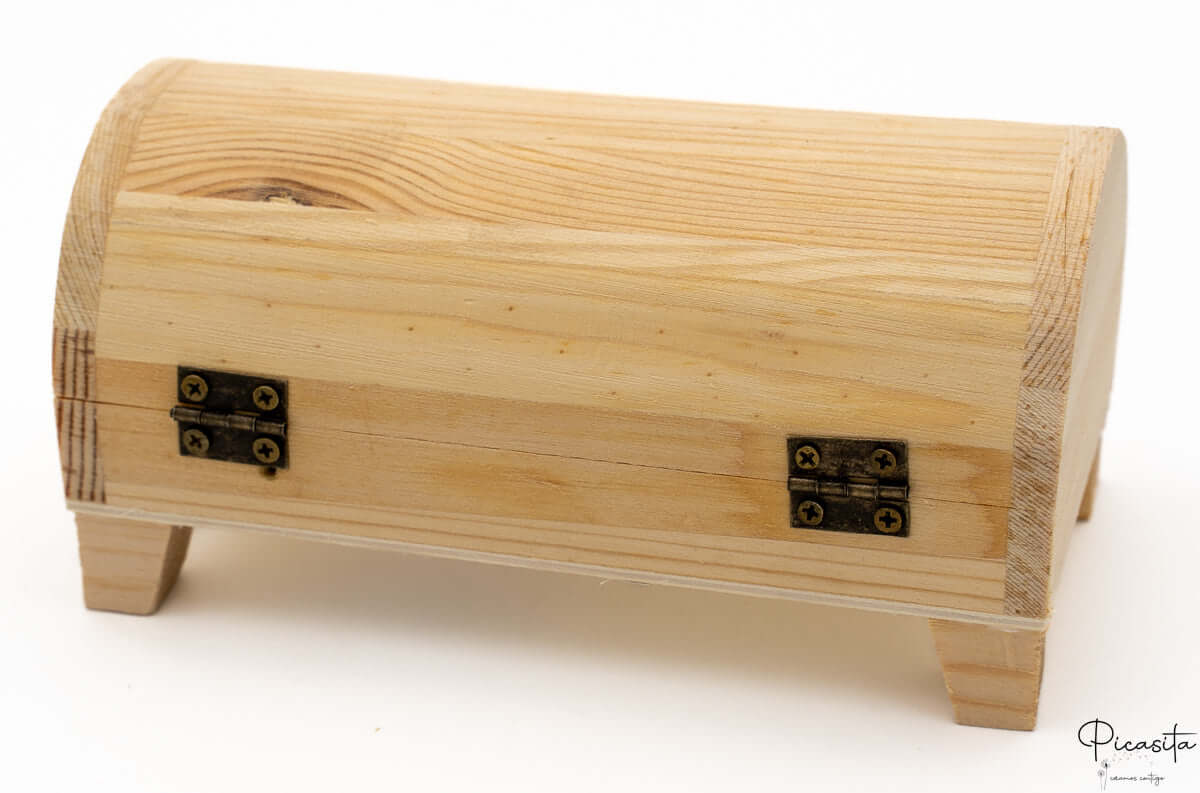 Esta caixa para votos não é apenas um recipiente; é um baú de design rústico e refinado. Fabricada inteiramente em madeira de pinho de alta qualidade, apresenta uma tampa curva e um fecho metálico de estilo vintage em tom bronze envelhecido que evoca os antigos baús de tesouros. Com umas dimensões do produto de 7,0 cm de altura, 7,0 cm de comprimento e 20,0 cm de largura, é o espaço ideal para acomodar confortavelmente os vossos votos de casamento escritos em pergaminho ou papel enrolado.