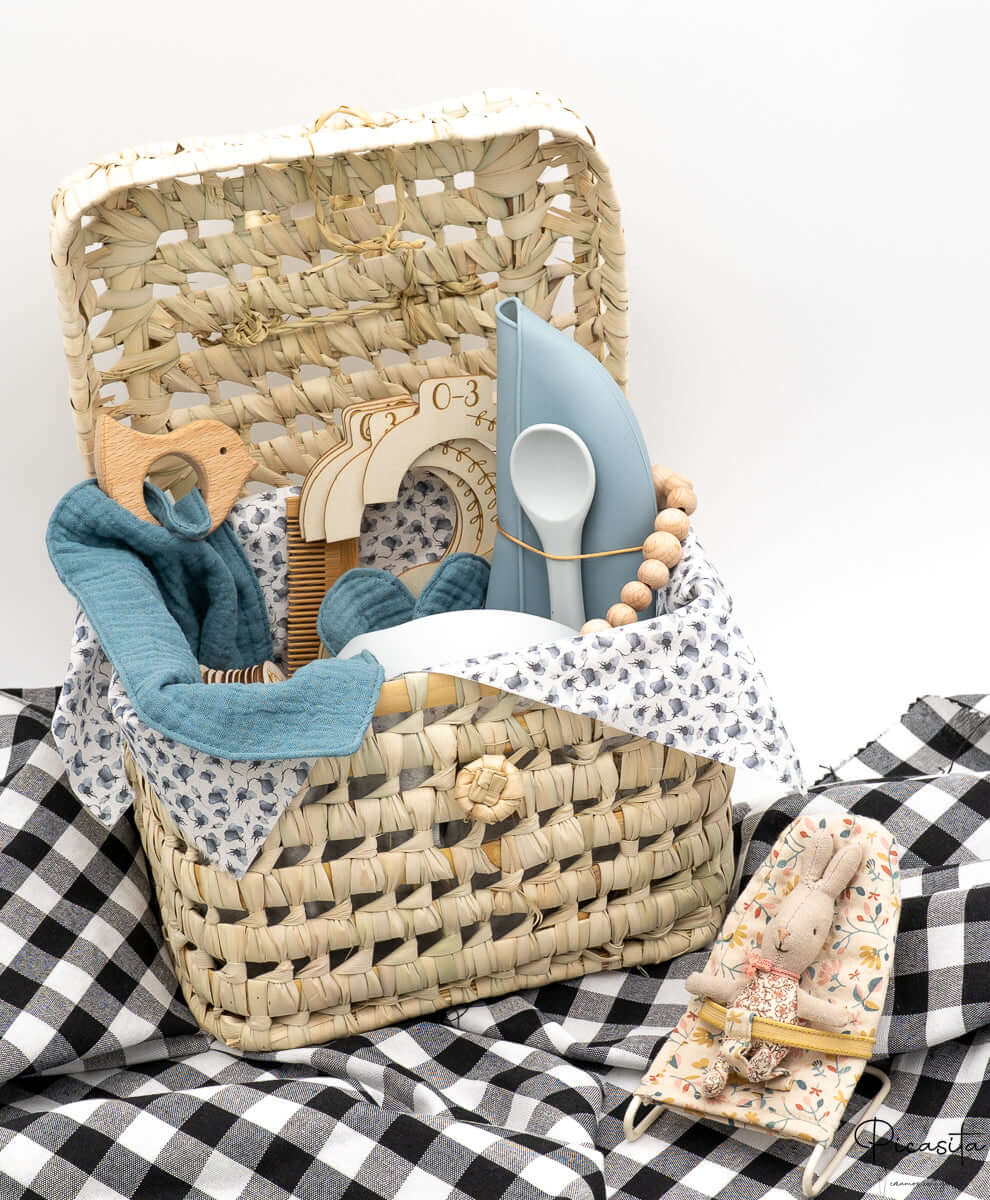 Procura o presente para recém-nascido perfeito que combine utilidade e emoção? Na Picasita desenhámos esta cesta bebé personalizada pensando nas necessidades reais dos pais e no bem-estar do bebé. Apresentada numa preciosa cesta artesanal de folha de palma feita à mão, esta seleção é muito mais do que um detalhe; é uma canastilha para o bebé que perdurará no tempo.