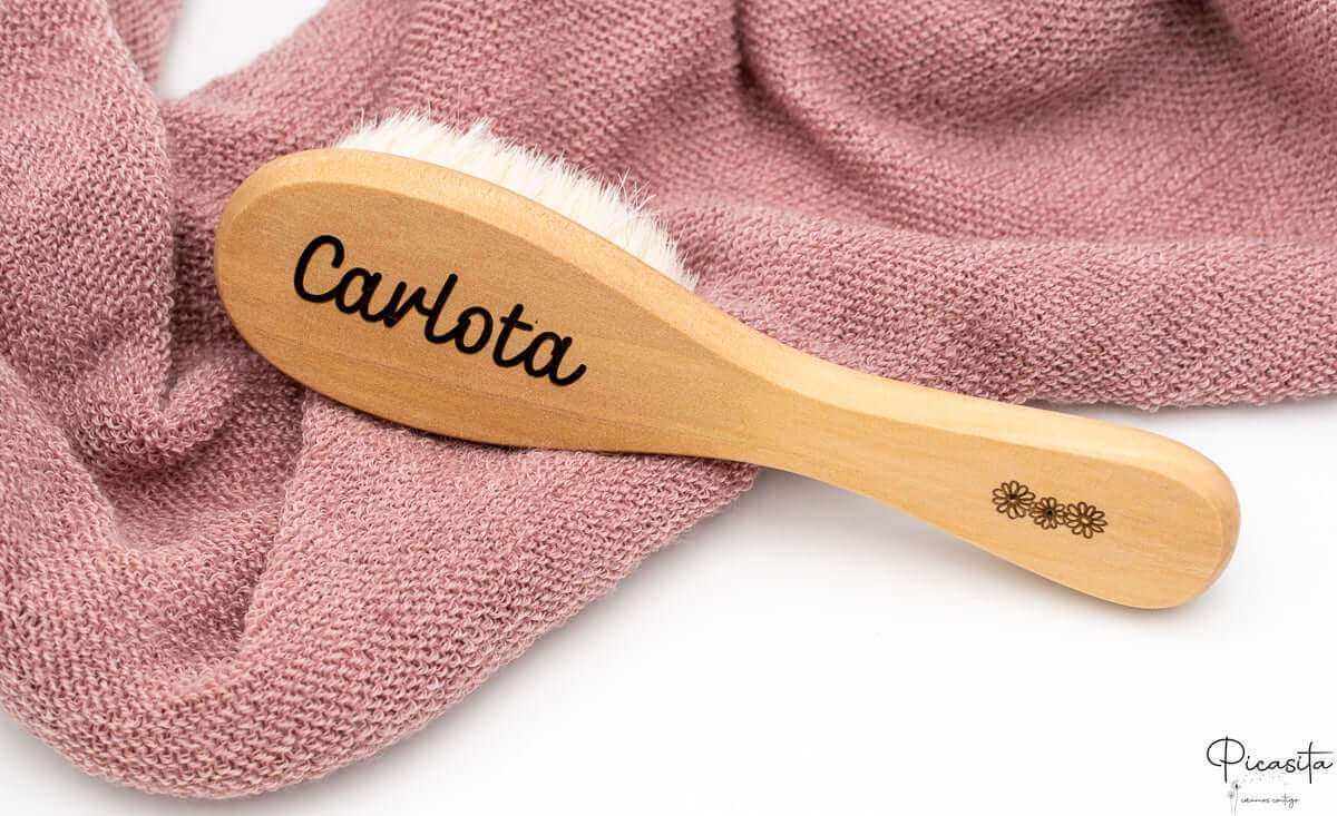 • Escova de Lã Natural: Com cerdas de suavidade extrema, especial para o delicado couro cabeludo do recém-nascido.