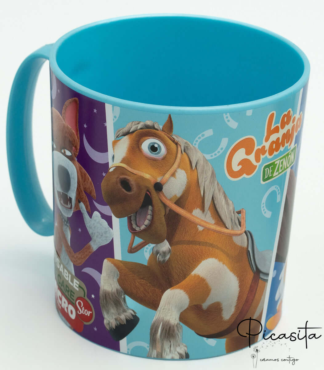 A segurança é a nossa prioridade absoluta. Esta chávena da quinta do Zenon conta com a certificação 'Planet Care' e é adequada para micro-ondas (máximo 2 minutos), facilitando o dia a dia dos pais. Está livre de BPA e desenhada com bordas arredondadas para evitar qualquer arranhão nas gengivas ou lábios do pequeno.