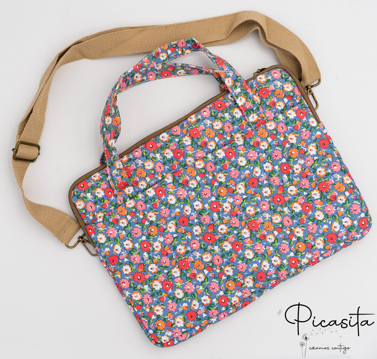 O que torna única esta capa macbook air 13 é o cuidado nos detalhes. Conta com um forro interior suave ilustrado com motivos vintage (lâmpadas, tesouras, frascos) que protege a superfície do teu dispositivo. O fecho superior possui um puxador metálico em forma de peixe, um toque distintivo de qualidade. Além disso, incluímos uma alça ajustável cor areia para levar ao ombro e pegas curtas para a mão.