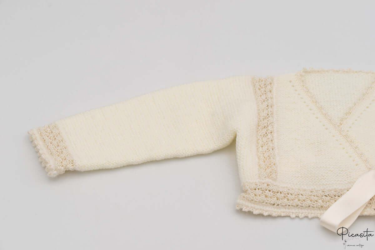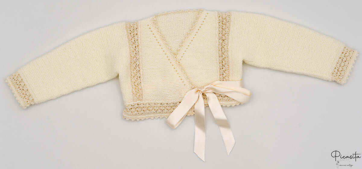 Na Picasita.es, entendemos que a primeira roupa de um filho é um momento inesquecível. Por isso, este casaco para recém-nascido não é simplesmente uma peça de roupa; é uma obra de arte tecida com o coração. Cada casaco de lã para bebé que vê na nossa loja é o resultado de décadas de tradição: são confeccionados à mão em Espanha pela minha própria mãe, que aprendeu o ofício com a minha avó. Esta herança familiar garante que receba uma peça exclusiva que não encontrará em nenhuma outra loja física nem plataforma online.
