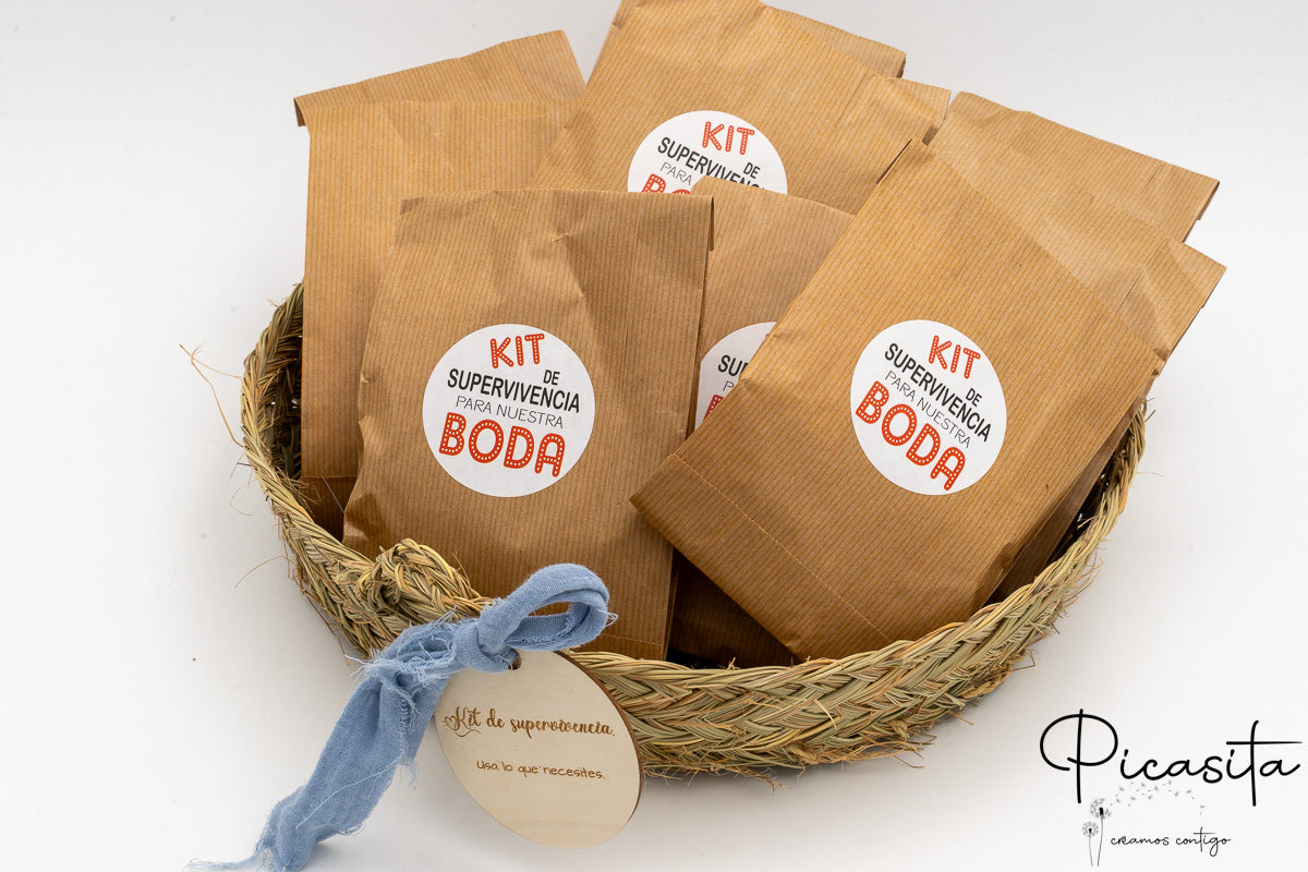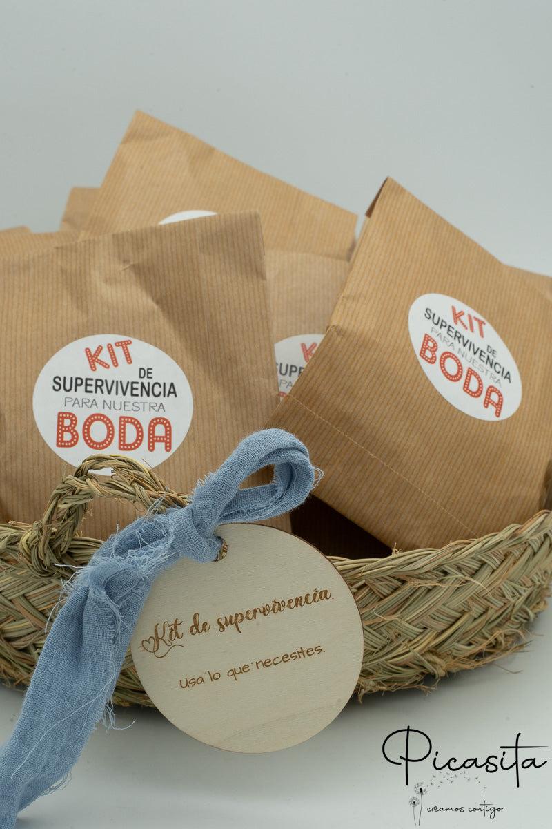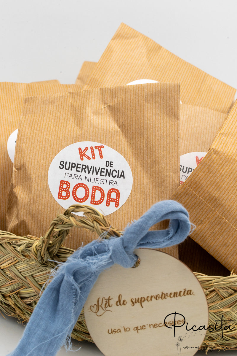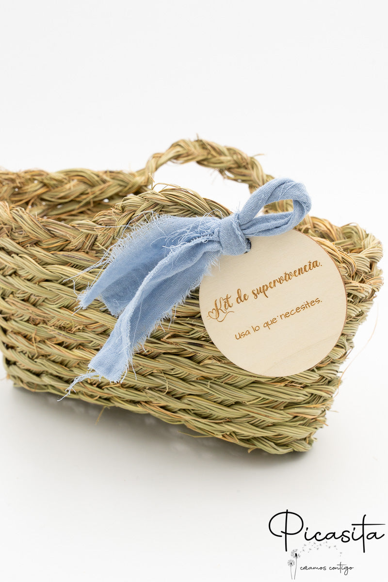 Na picasita sabemos que os pequenos pormenores transformam uma celebração numa recordação inesquecível. Este cesto de esparto feito à mão não é apenas um objeto decorativo, é o recipiente perfeito para o teu kit de sobrevivência. Colocado estrategicamente na casa de banho, este organizador rústico oferece aos teus convidados tudo o que é necessário para resolver imprevistos, desde uma irritação até ao cansaço da noite. Um bom kit de sobrevivência demonstra empatia e cuidado por quem te acompanha no teu dia especial.