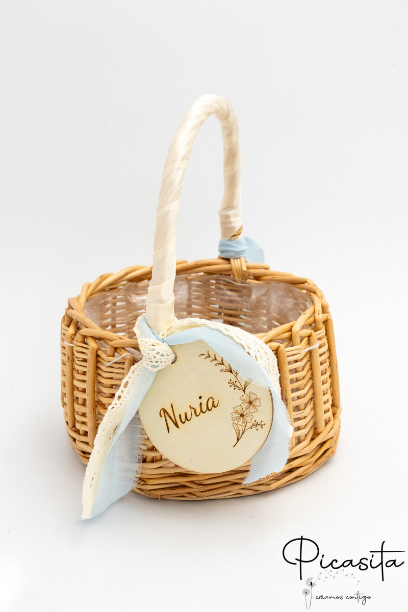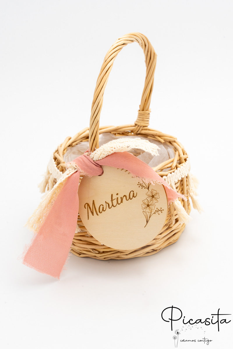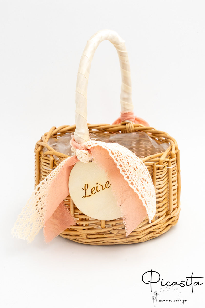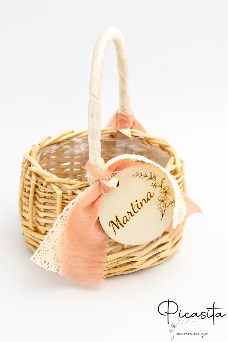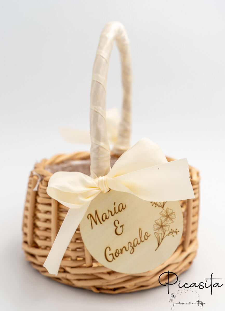 Para adicionar um toque de sofisticação e ternura, cada cesta para daminhas vem adornada com lindas fitas de tecido (que incluem laços com bordas desfiadas em estilo boho, delicados detalhes em renda) e uma bonita medalha redonda de madeira natural que pende da pega. Alguns dos nossos modelos incorporam um prático forro interior de tecido branco ou um revestimento de plástico transparente, ideal para proteger o interior se decidires usar o cesto para daminhas com pétalas naturais ou artificiais que também podes descobrir explorando A Nossa Loja.