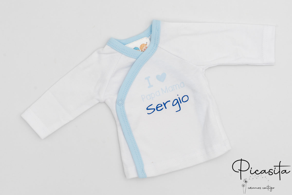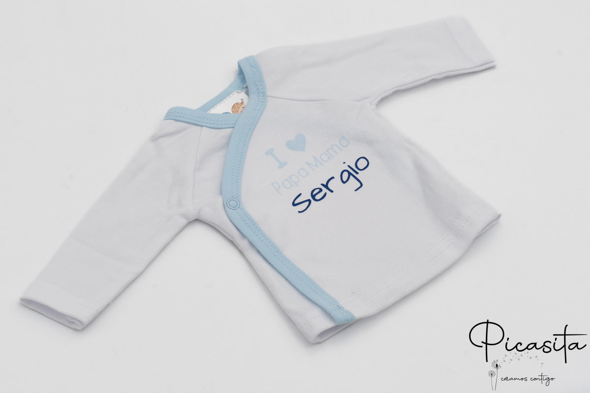 Para este conjunto personalizado para a primeira roupa é necessário indicar o nome. Se não o souber, recomendamos escolher outros modelos da nossa coleção que não exijam personalização.