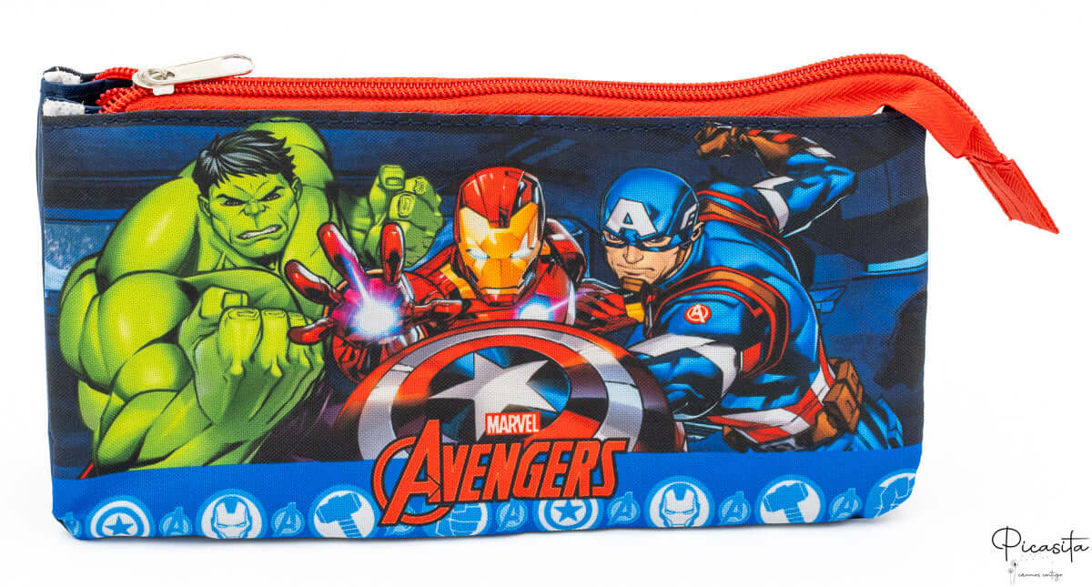 Modelo de Compartimento Triplo: A solução definitiva para o ensino básico. Com os seus 22,0 cm de largura, este estojo vingadores permite separar por secções as canetas, os marcadores e as ferramentas de desenho como borrachas ou apontadores, evitando que o material se misture ou se perca.