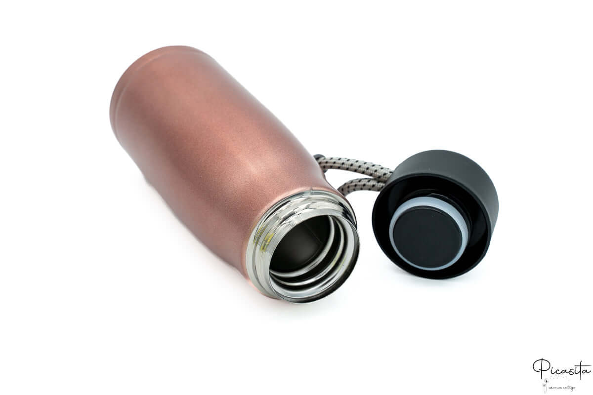 Manter-se hidratado nunca foi tão simples e elegante. A nossa garrafa térmica de 500 ml é fabricada em aço inoxidável 304 de grau alimentar, garantindo um recipiente seguro e livre de BPA. Graças à sua tecnologia de parede dupla com isolamento a vácuo, esta garrafa térmica preserva a temperatura das suas bebidas sem suar nem transmitir calor para o exterior, mantendo o frio até 24 horas e o calor até 12 horas.