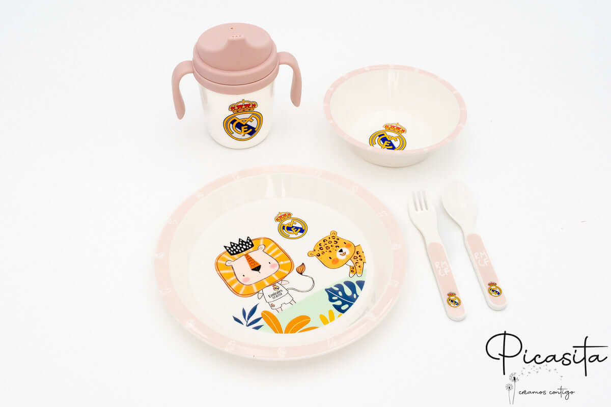 A hora da refeição é um momento chave para o desenvolvimento do seu pequeno. Com este conjunto de loiça infantil, transformarás cada prato numa experiência emocionante e cheia de valores. Na Picasita.es trazemos-te o conjunto de loiça infantil do Real Madrid definitivo: uma ferramenta desenhada para unir a paixão pelo desporto com a funcionalidade que precisas no dia a dia para que o teu pequeno madridista desfrute de cada dentada.