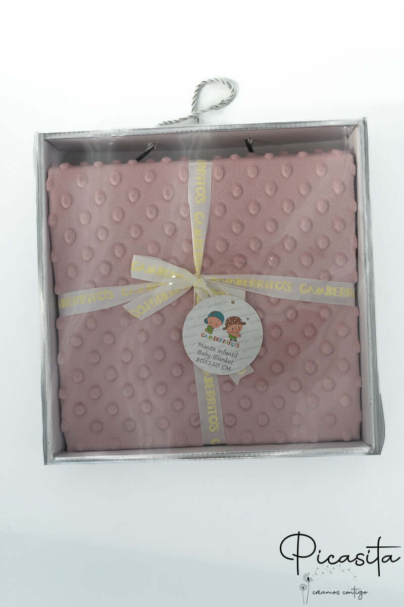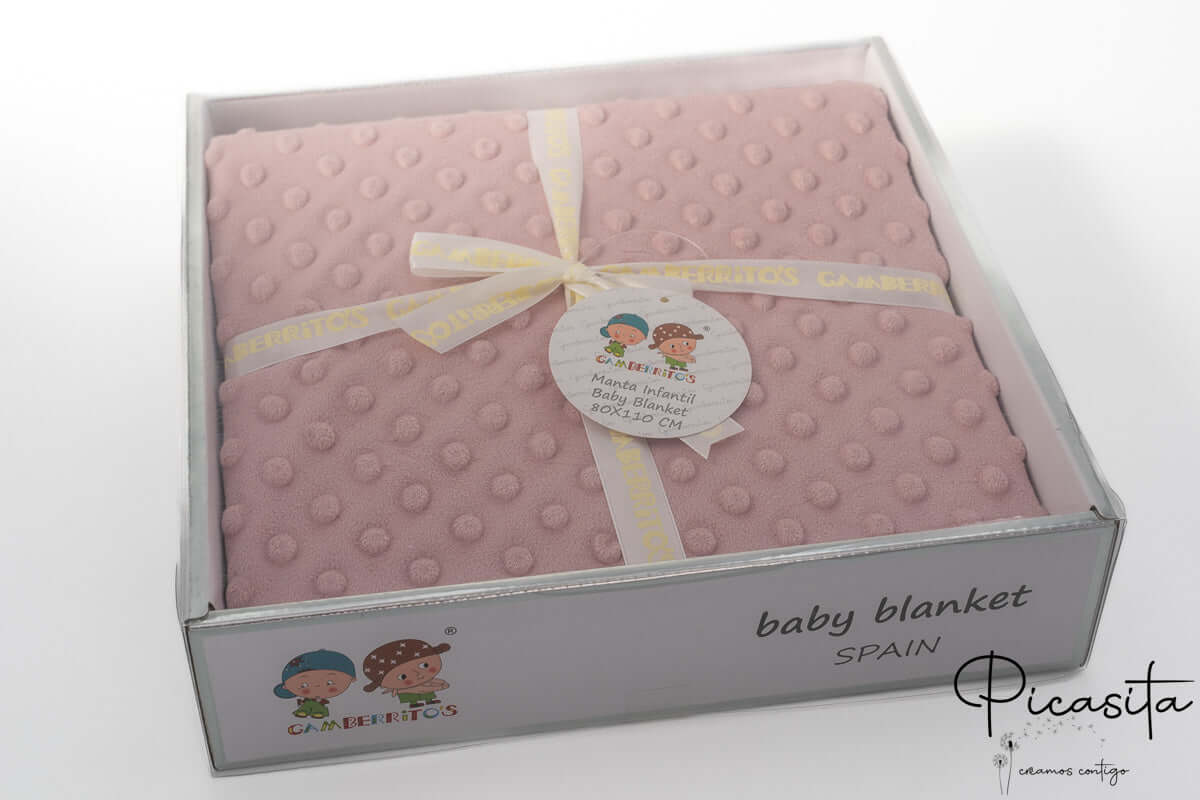 A manta de bolinhas é ideal para bordar devido à qualidade do seu tecido, mas na Picasita não oferecemos o serviço de personalização; é enviada lisa.