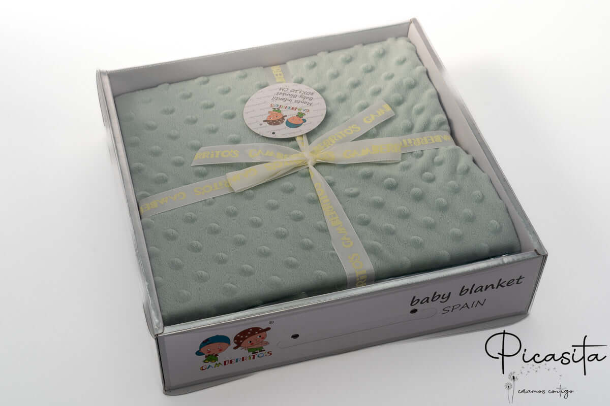 Tem de fazer um presente de nascimento? A nossa mantinha para bebé é uma escolha prática e sofisticada. É entregue com uma excelente embalagem em caixa, tornando-a perfeita para oferecer em baby showers ou visitas ao hospital. Embora na Picasita não realizemos serviços de personalização, o tecido desta manta de bolinhas é ideal para bordar, permitindo-lhe adicionar o nome do bebé por sua conta para criar um detalhe único e pessoal. Disponível em cores suaves como Rosa e Verde, adapta-se a qualquer preferência decorativa.