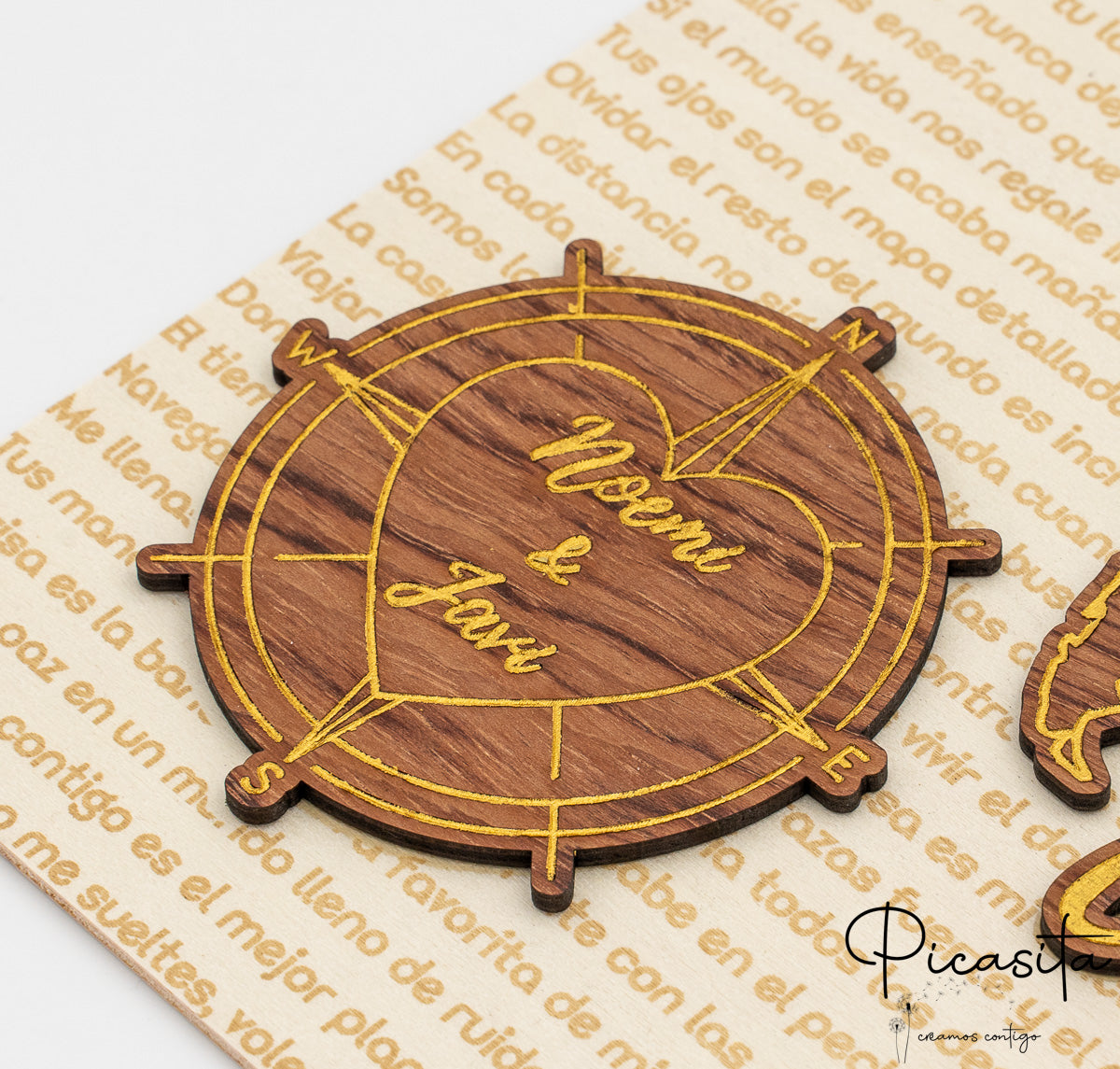 Se te apaixonas por este estilo, convidamos-te a descobrir toda a nossa gama de Placas de Madeira Gravada, onde encontrarás mais opções para surpreender. Na Picasita, dedicamo-nos a transformar materiais naturais em emoções.