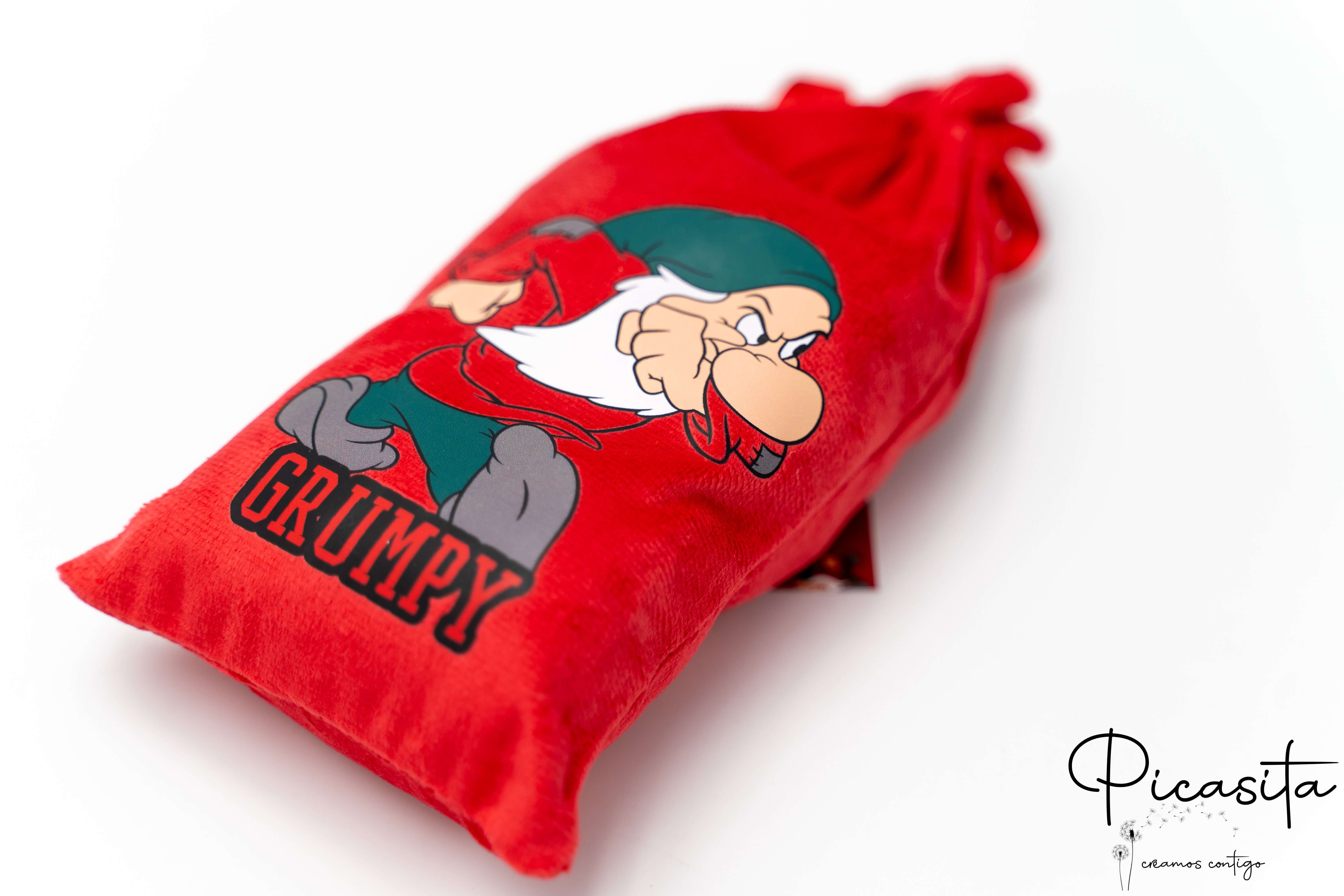 Inclui dois pares de meias com designs diferentes do anão Rabugento e um saco de tecido temático Disney para guardá-las ou entregá-las diretamente como presente.