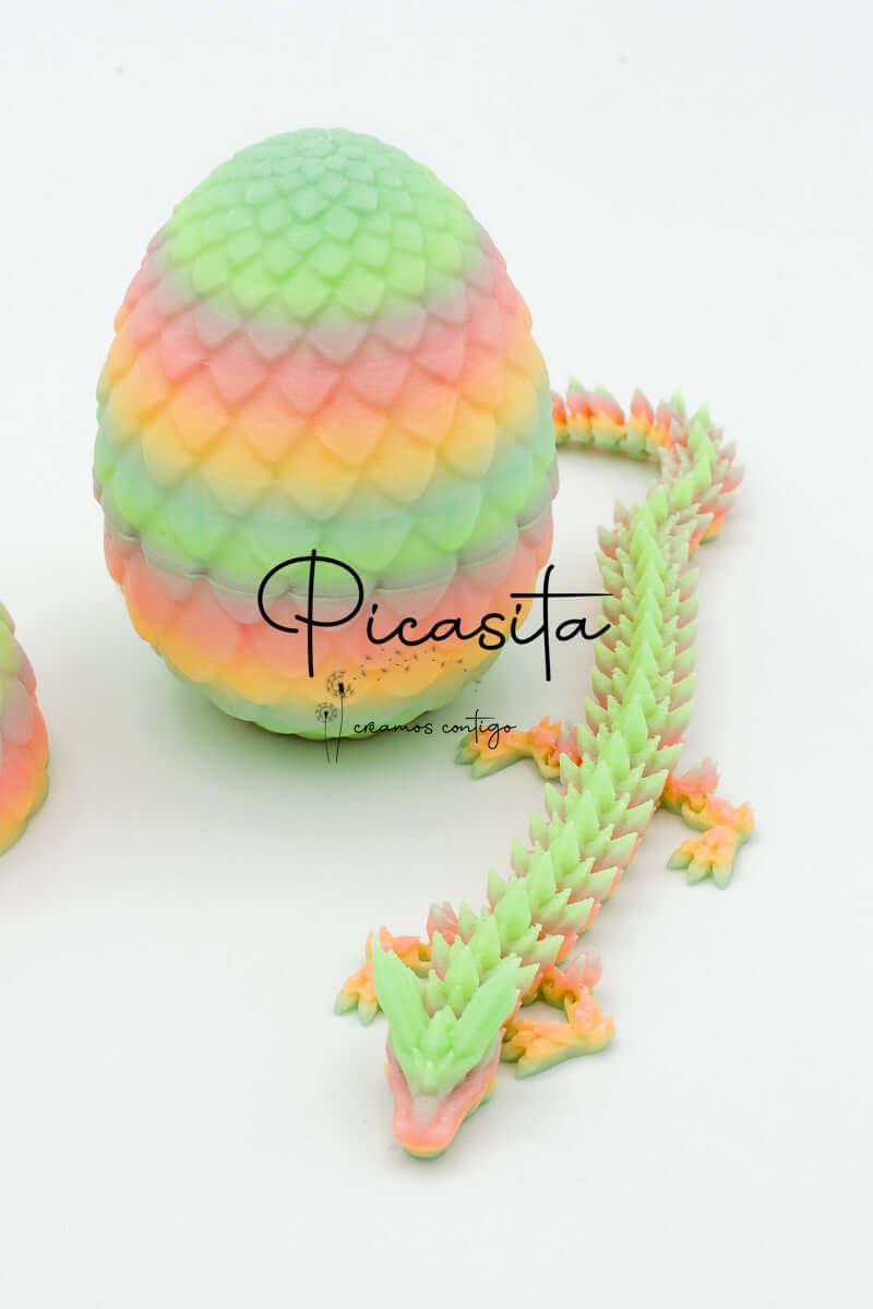 A fabricação deste produto é realizada através de processos avançados de impressora 3d de dragão, utilizando PLA de alta qualidade. O PLA é o material mais popular e valorizado na impressão tridimensional pela sua excelente definição e origem vegetal. Graças à técnica de impressora 3d de dragão, conseguimos um efeito de cor degradada único: os tons verdes, rosados e amarelos fundem-se suavemente, fazendo com que cada ovo e dragão seja uma peça irrepetível.