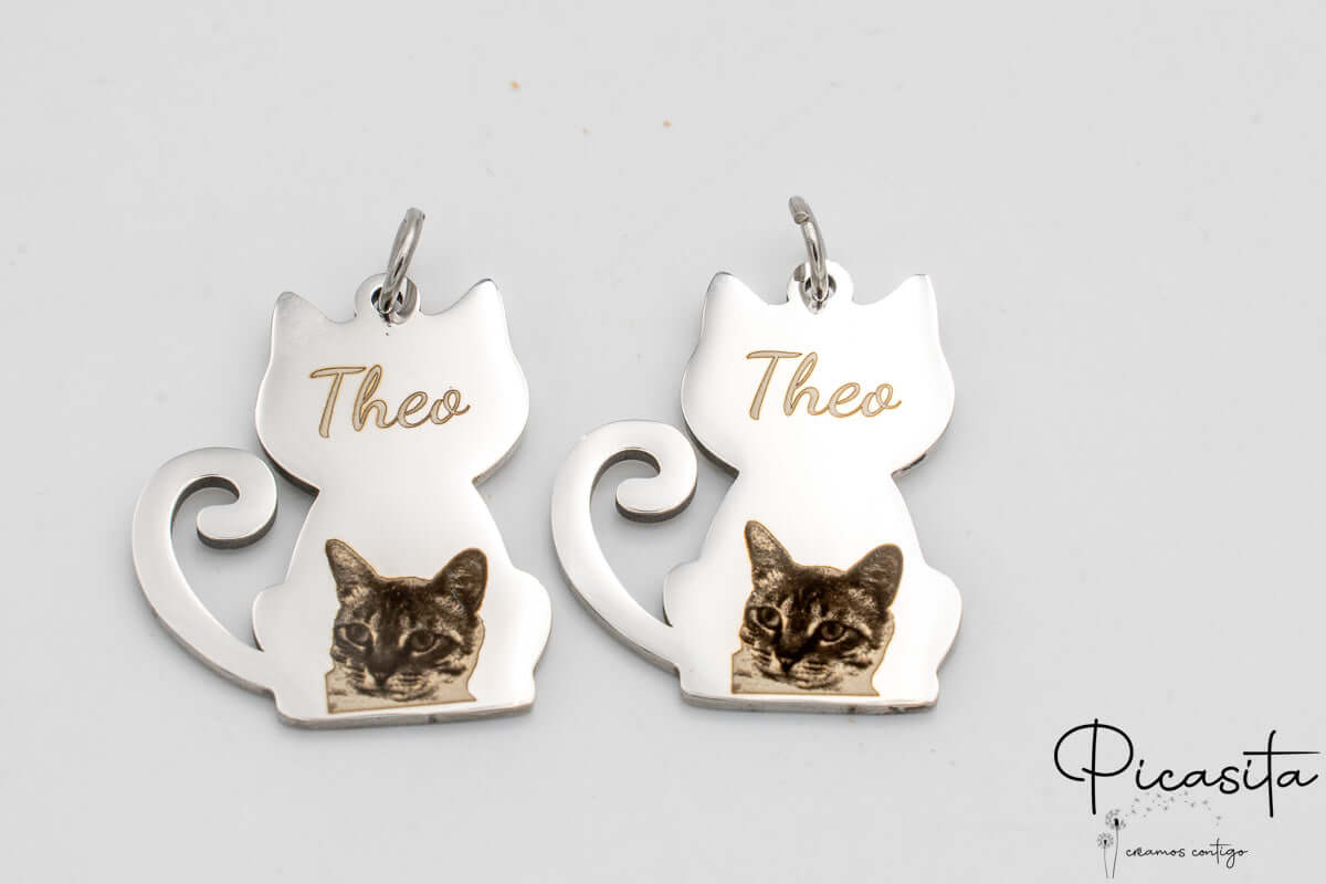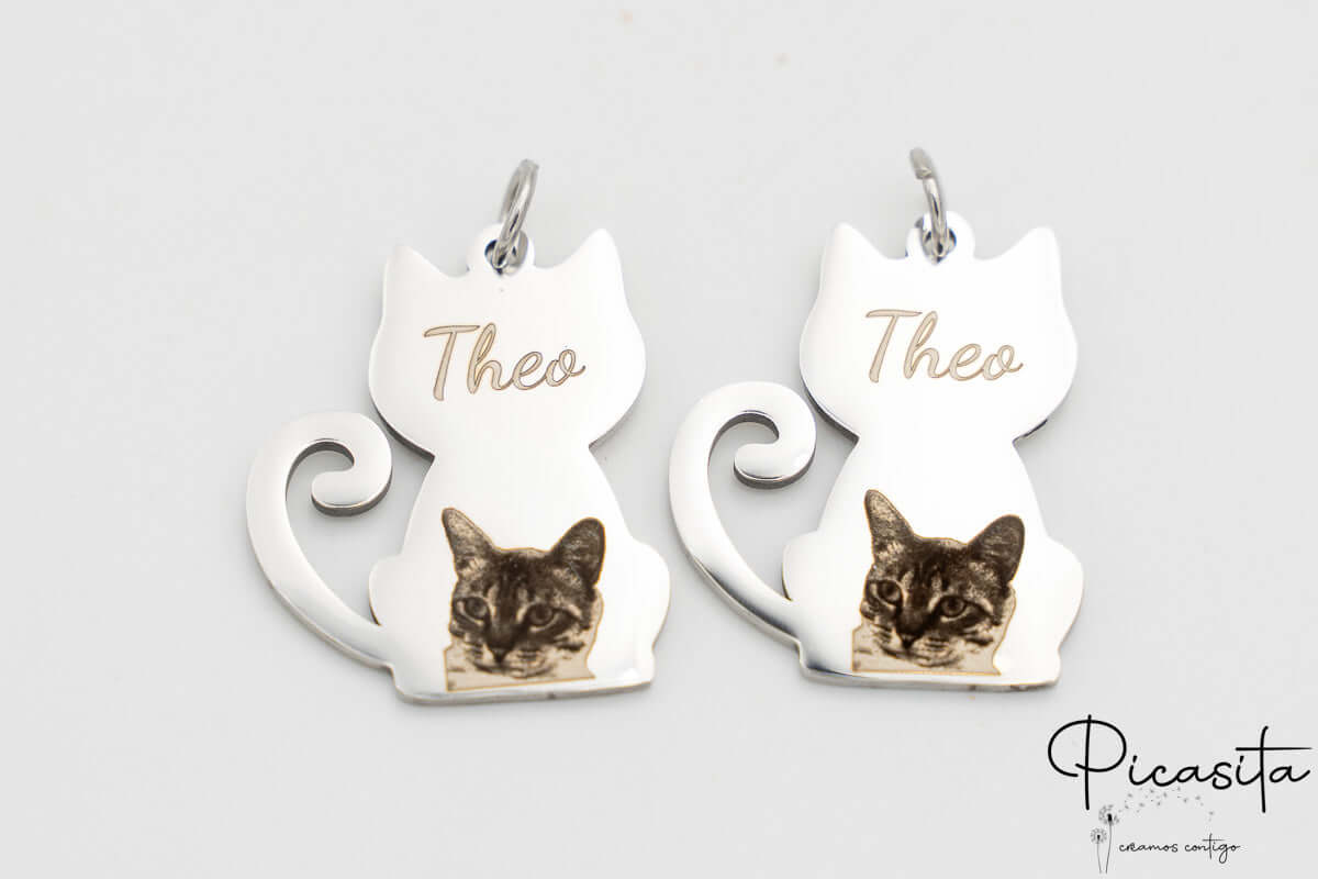 A verdadeira magia deste produto reside na nossa técnica de personalização a laser. Gravamos com precisão fotográfica o rosto do teu animal de estimação e o seu nome diretamente sobre o metal. O laser atua sobre o aço criando um contraste elegante, permanente e indelével, garantindo que o teu porta-chaves de gato mantenha a sua nitidez e beleza com o passar do tempo, resistindo ao atrito contínuo. Para obter o resultado mais espetacular no teu porta-chaves com foto de gato, recomendamos vivamente que envies uma imagem nítida, com boa iluminação e, na medida do possível, com um fundo liso.