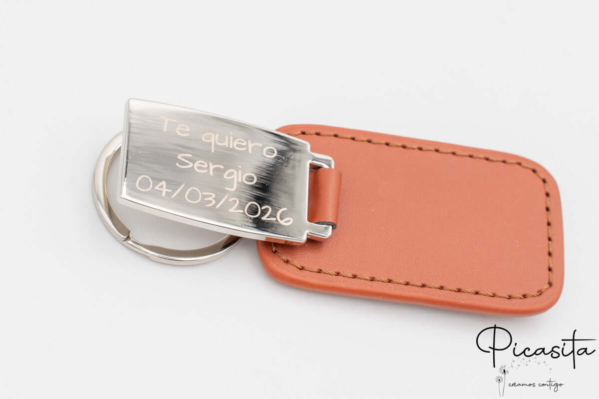 Está fabricado em aço inoxidável de alta qualidade, o que garante a sua durabilidade, brilho e resistência à ferrugem. Além disso, oferecemos uma variante de porta-chaves que combina a placa de aço com um elegante suporte de couro sintético castanho.