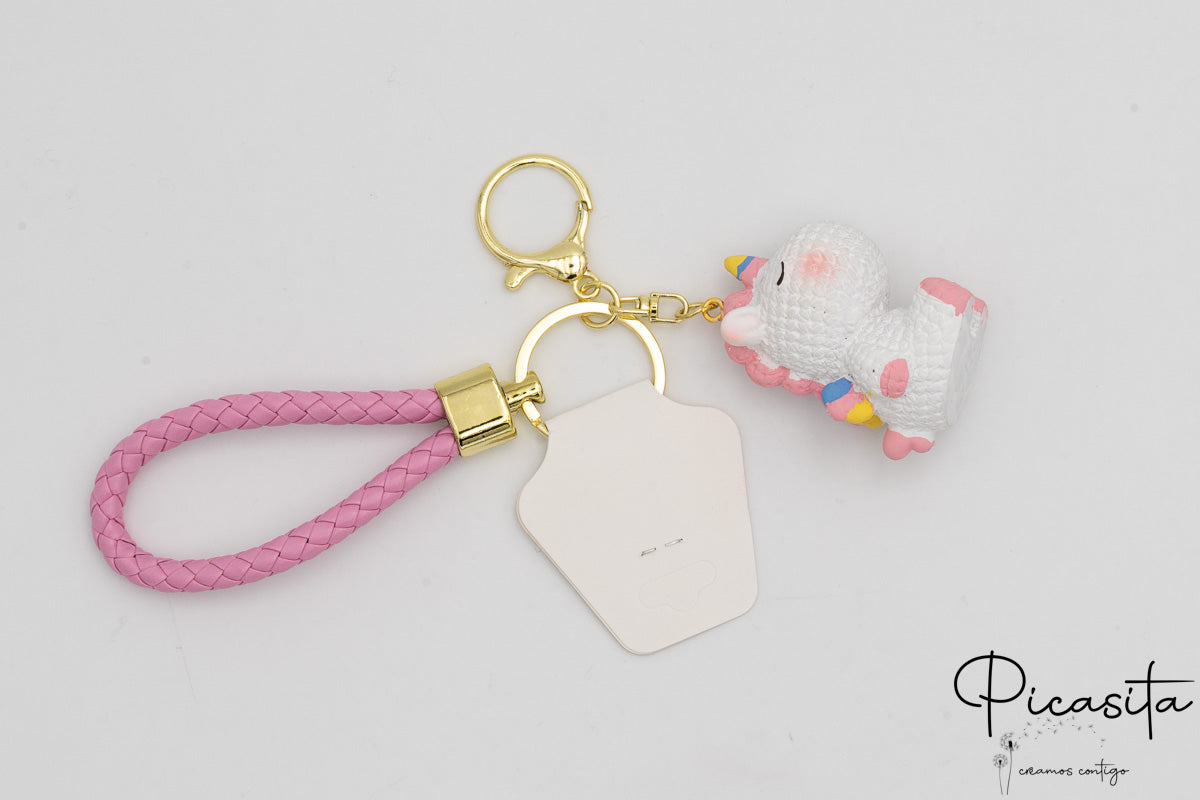 Ao contrário de outros modelos mais frágeis, este porta-chaves de unicórnio destaca-se pela sua figura robusta, pensada para resistir ao quotidiano agitado sem perder o seu encanto. A combinação da figura branca com os detalhes coloridos na crina e na correia a condizer torna-o visualmente harmonioso.
