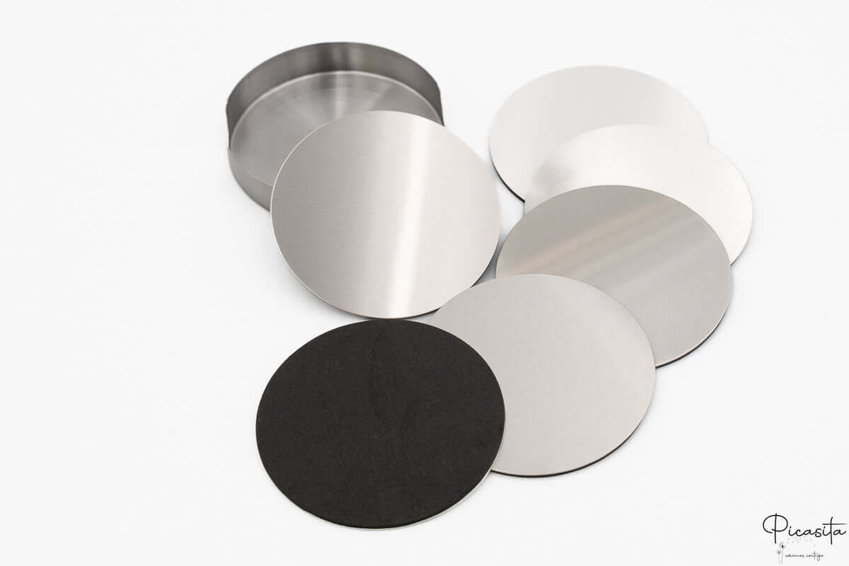 A funcionalidade destes porta-copos metal gravados é tão impecável quanto a sua estética. Cada peça conta com um apoio protetor na sua parte inferior, fabricado num material suave (como cortiça ou feltro). Este apoio evita que o porta-copos metal gravado risque superfícies delicadas e proporciona uma aderência antiderrapante, protegendo as suas mesas da condensação e do calor das bebidas.