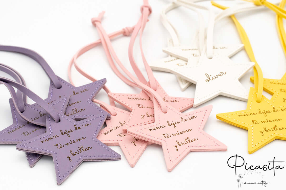 Procura uma alternativa original e com significado às clássicas sacas de rebuçados? As nossas estrelas em couro sintético PU são o presente para convidados de aniversário ideal para quem deseja oferecer um detalhe que perdure. Em vez de açúcares e embalagens de plástico, ofereça um objeto com uma mensagem de afeto que os mais pequenos poderão conservar durante anos nas suas mochilas ou estojos.