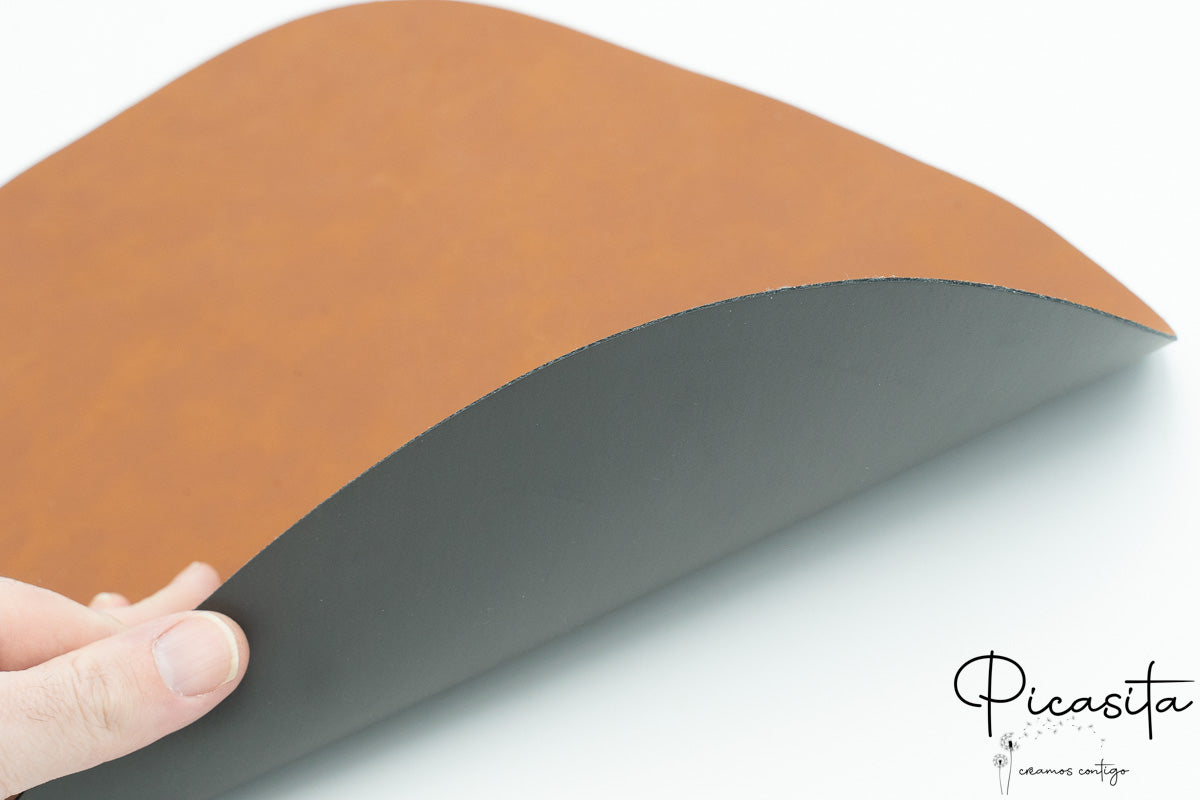 Um lado: Couro PU na superfície com verso têxtil. É uma opção flexível e leve, ideal para armazenamento compacto.
