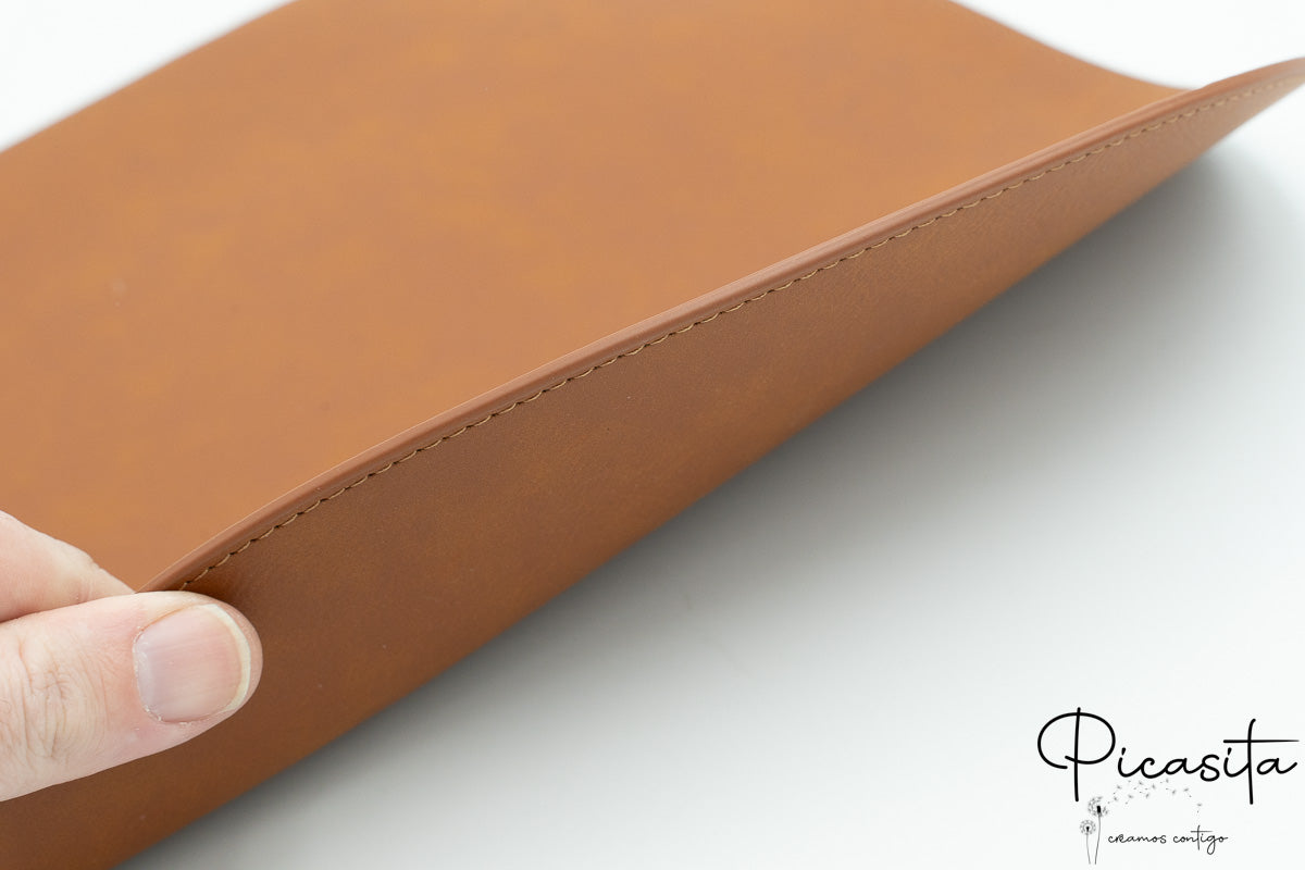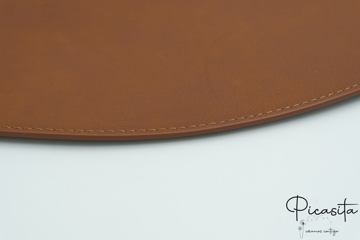 Dupla face (Premium): Duas folhas de couro PU enfrentadas, seladas nas bordas e cosidas ao longo de todo o perímetro. Esta confeção proporciona maior rigidez, corpo e presença na mesa, transmitindo uma sensação de maior luxo.