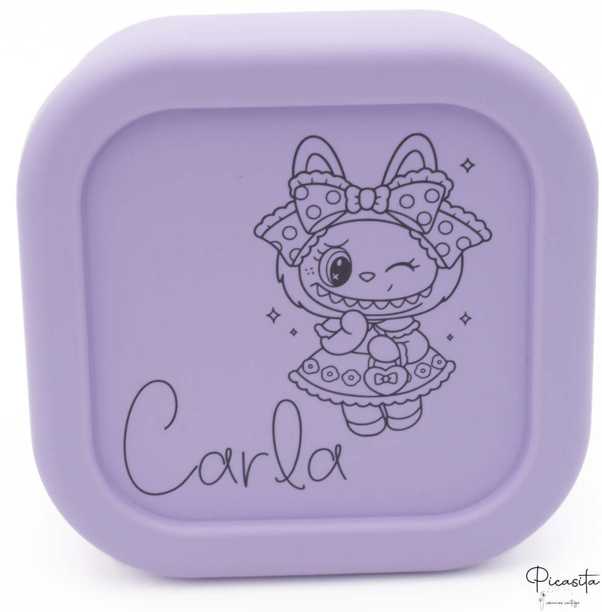 O que realmente faz a diferença na Picasita é a capacidade de criar um tupper personalizado único. Utilizamos tecnologia de laser de alta precisão para gravar de forma permanente o nome, uma frase motivadora como "Bom apetite, Carlitos", ou mesmo aquele animalzinho que o seu pequeno tanto gosta. Por ser uma gravação a laser e não um autocolante ou impressão, o design não se apaga, não se descola e não se altera com as lavagens frequentes.