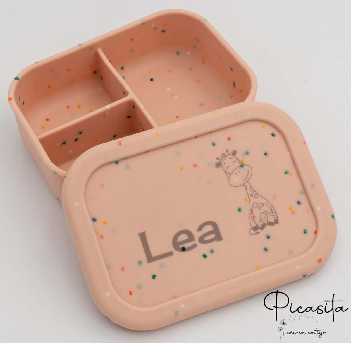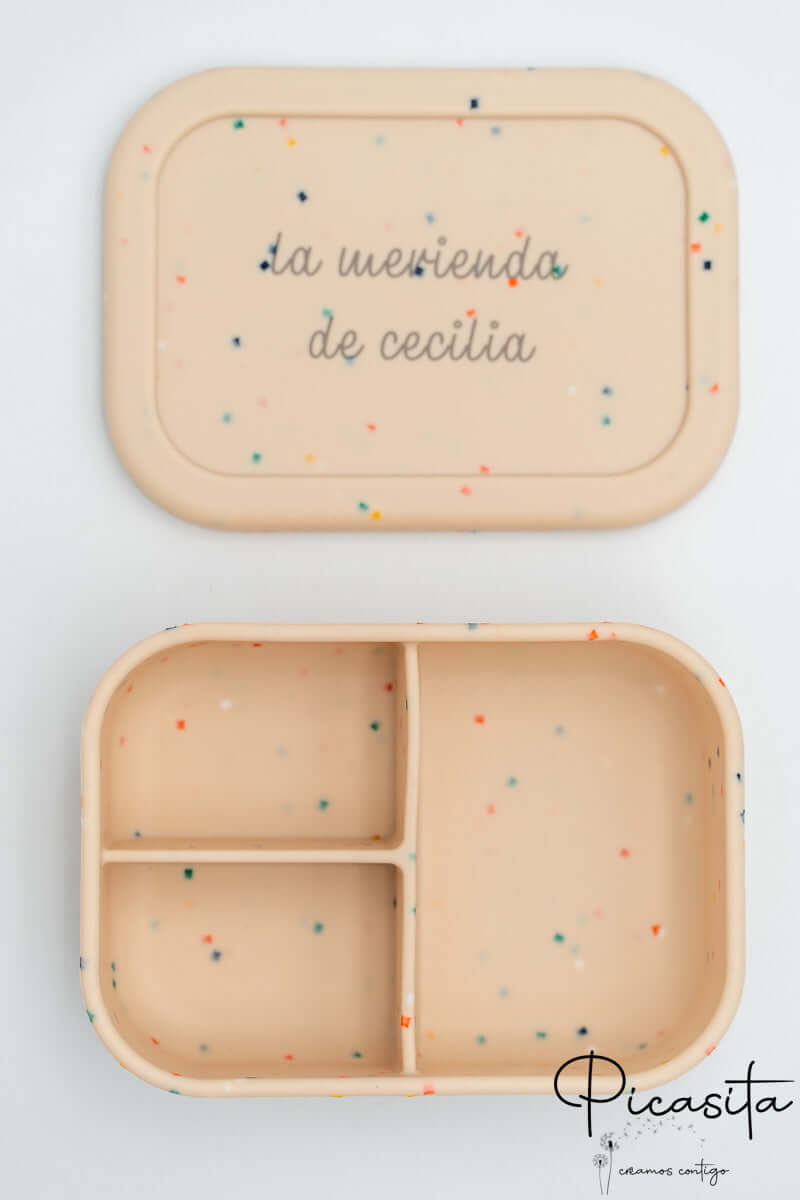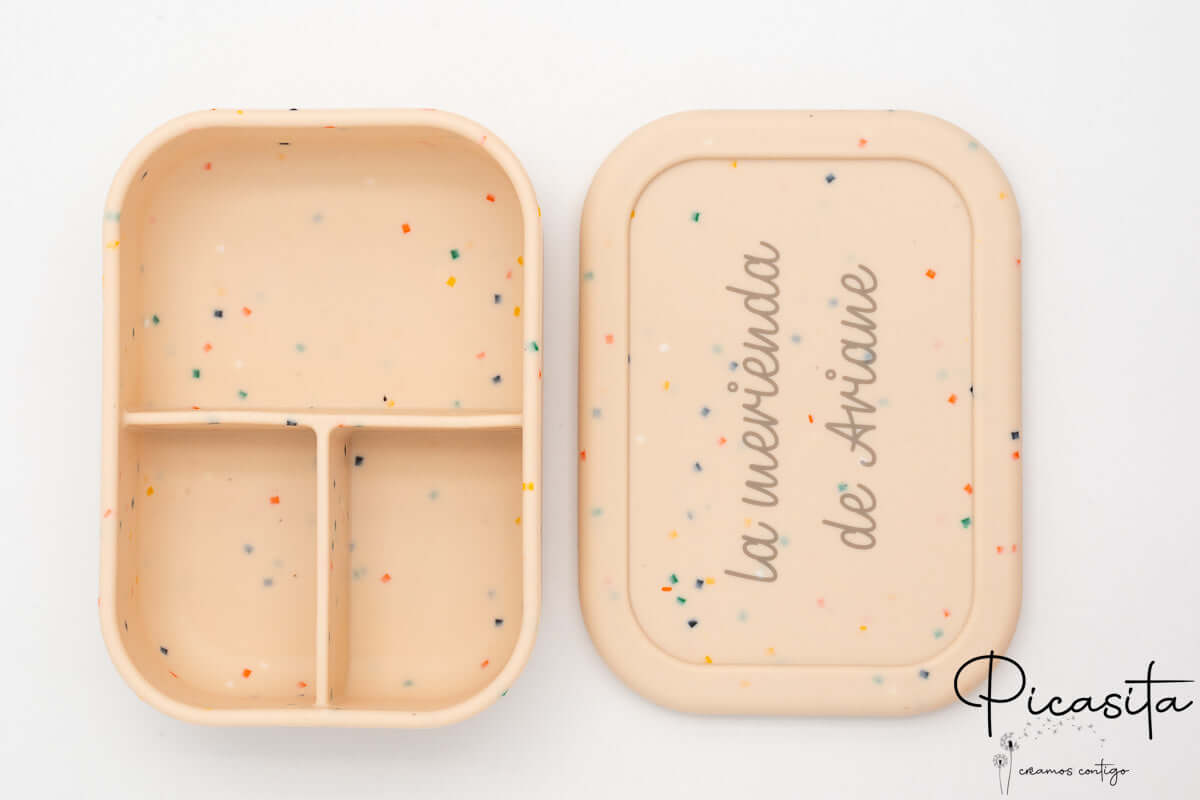 Na picasita, sabemos que a hora da refeição fora de casa pode ser um verdadeiro desafio para as famílias. Por isso, desenhámos o tupper grande de silicone definitivo. Esqueça os recipientes frágeis de plástico que acabam por partir-se ou perder-se no recreio da escola. Com o nosso tupper com compartimentos, cada alimento tem o seu próprio espaço. As suas três divisórias interiores evitam que os sabores e as texturas se misturem, algo fundamental para agradar aos paladares mais exigentes dos mais pequenos e garantir que comem toda a sua merenda ou pequeno-almoço.