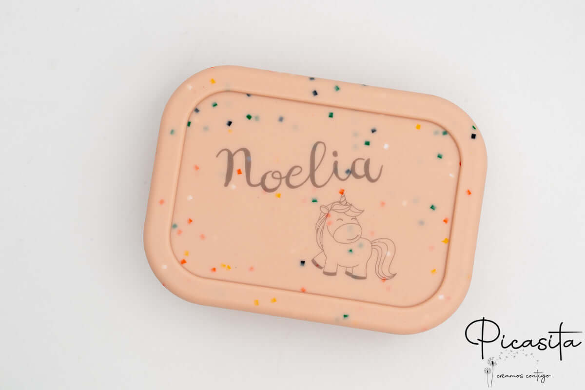 Cansado de que as lancheiras se percam semana após semana? A solução definitiva é um tupper grande personalizado. Utilizamos tecnologia de gravação a laser de alta precisão que deixa uma marca permanente, num elegante tom acinzentado, diretamente sobre o silicone. Este método é totalmente seguro, pois não utiliza tintas nem produtos químicos que possam degradar-se. Pode gravar o nome dele, uma frase especial ou escolher entre os nossos adoráveis desenhos de animaizinhos (como o leão, o veado ou a simpática girafa). Um tupper personalizado não só previne perdas escolares, como também dá ao seu filho um sentido de pertença e uma enorme alegria ao ver a sua lancheira única no mundo.