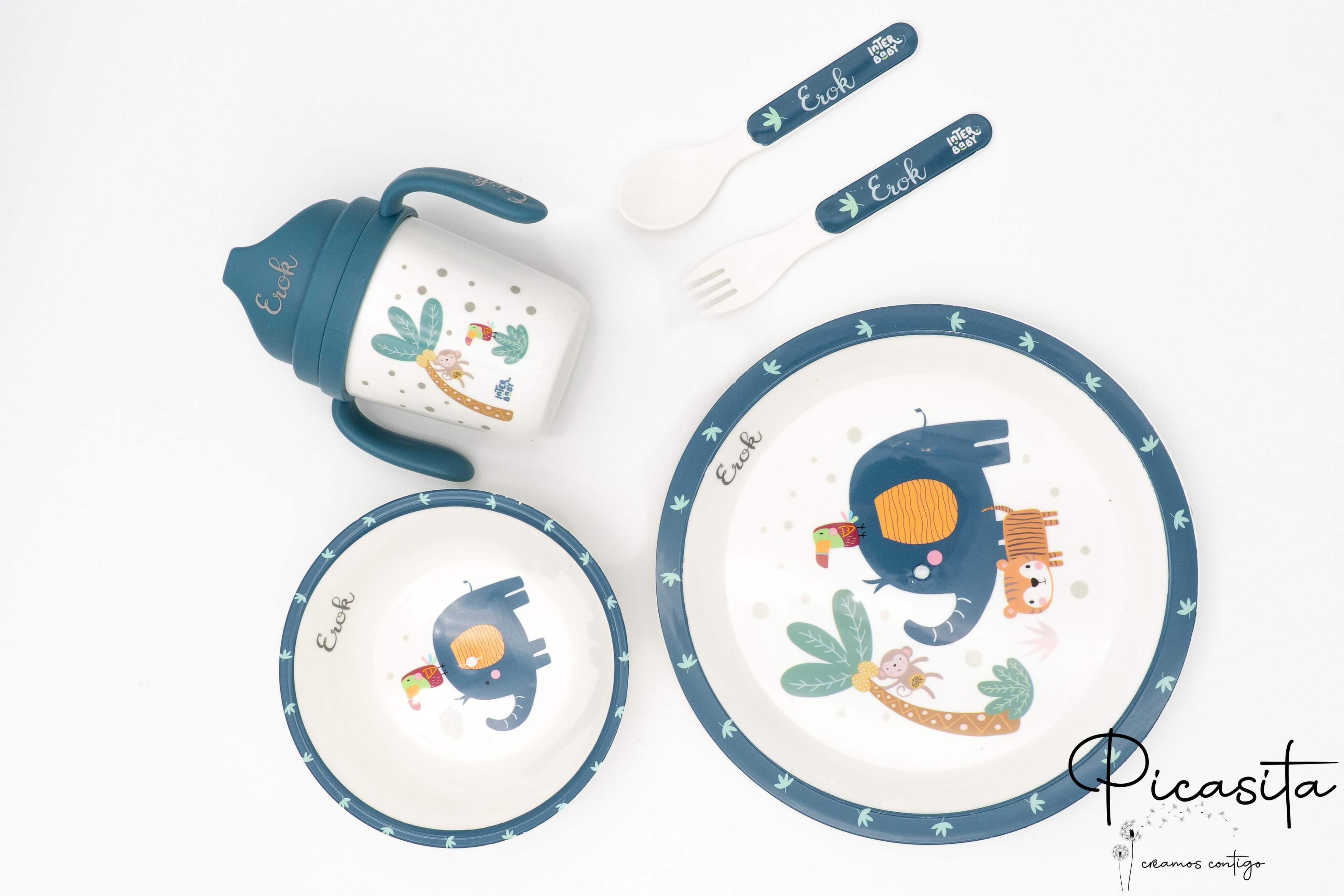 • 🎁 Set completo: Plato, bol, vaso de aprendizaje y cubiertos ergonómicos